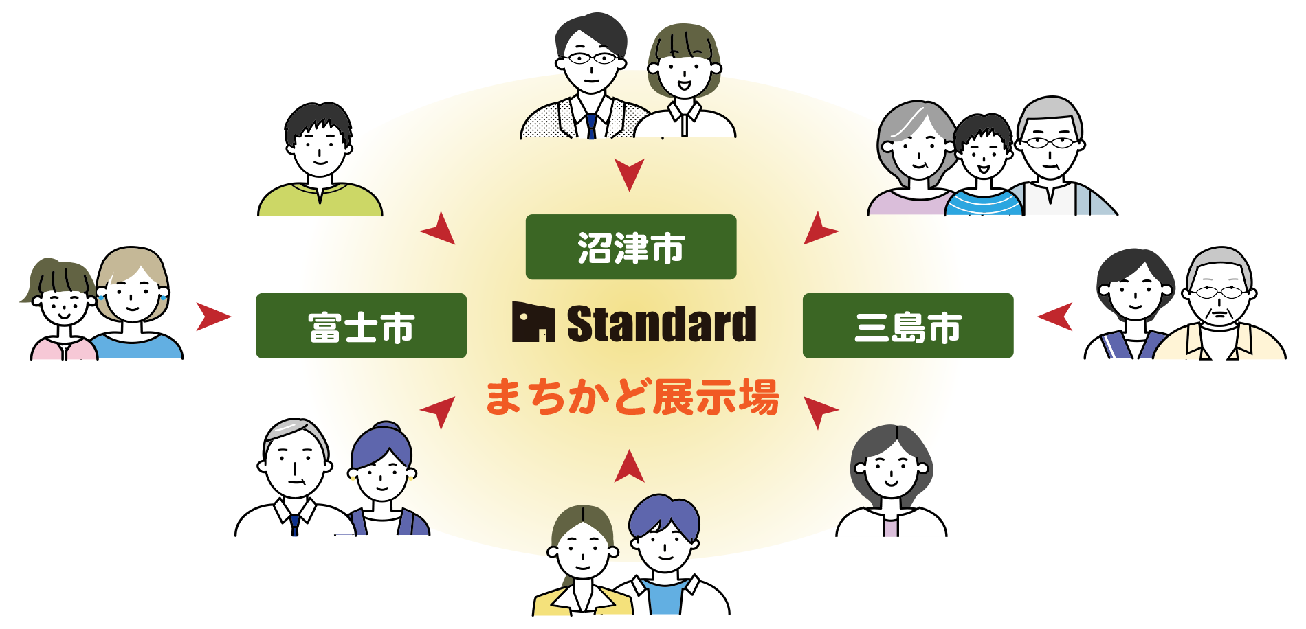 対応エリア内に常設モデルハウスをはじめ、一定期間だけ設置する「まちかど展示場」など、買いたい人が集まりやすく配慮しています。